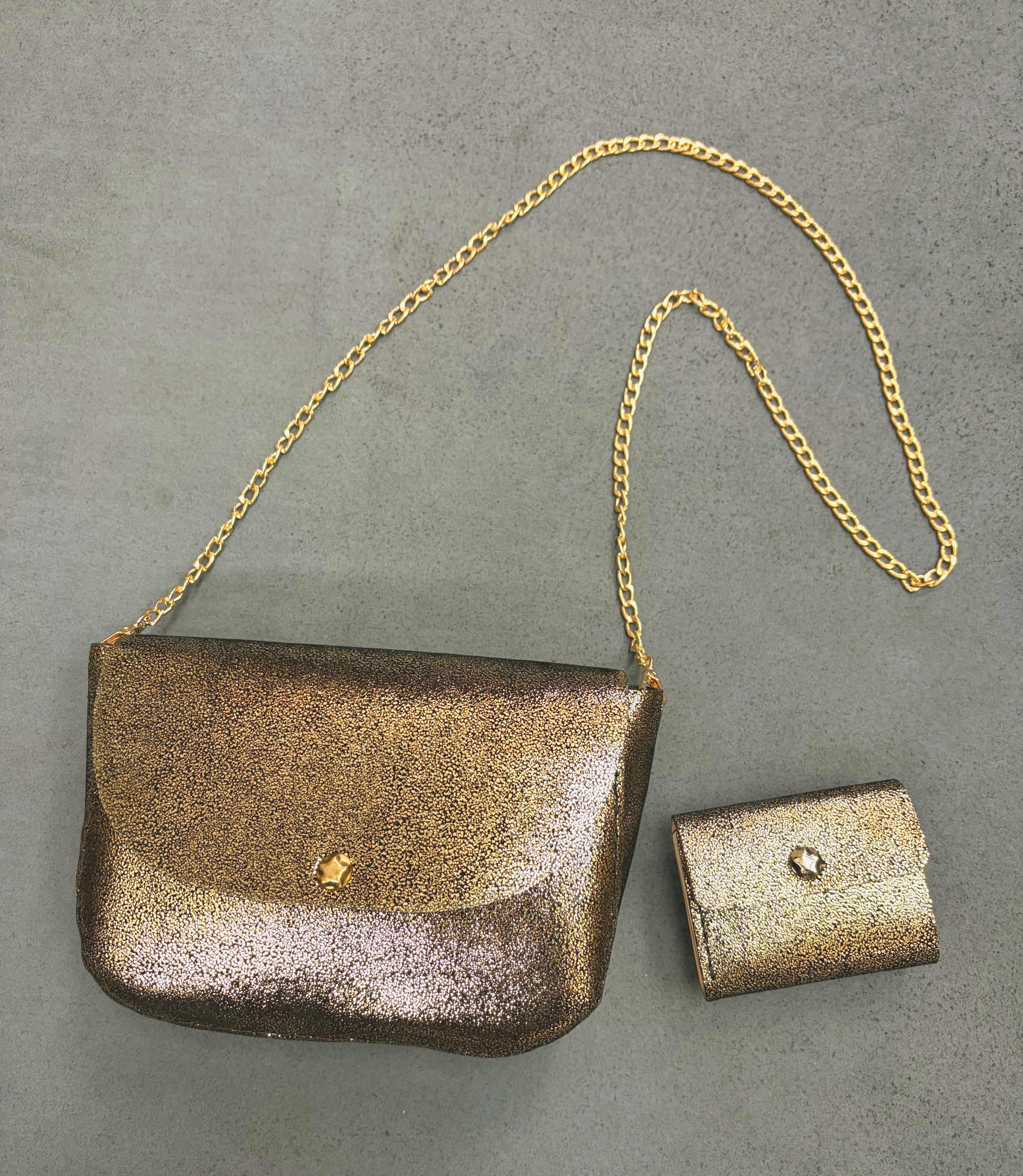 箔ラメ加工ゴールドレザーには、ゴールド金具&ゴールドチェーンがお勧めです!!