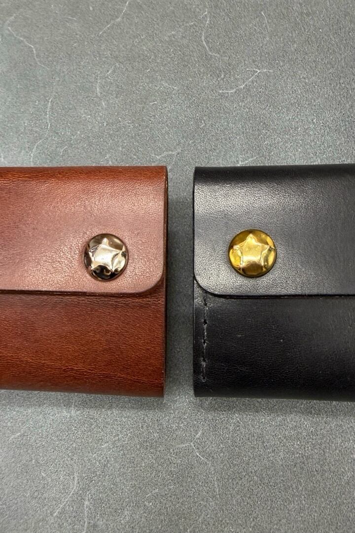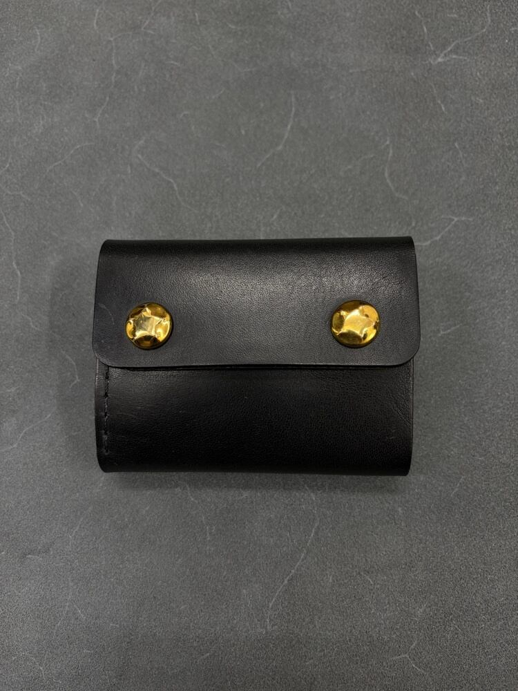 【即納】コンパクト三つ折り財布【PREGO(プレゴ)】MISSOURI(ブラックレザー)×五芒星ゴールド