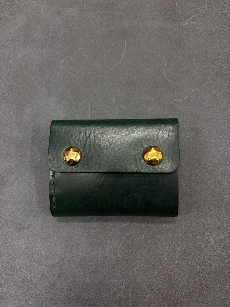 【即納】コンパクト三つ折り財布【PREGO(プレゴ)】MISSOURI(グリーンレザー)×五芒星ゴールド