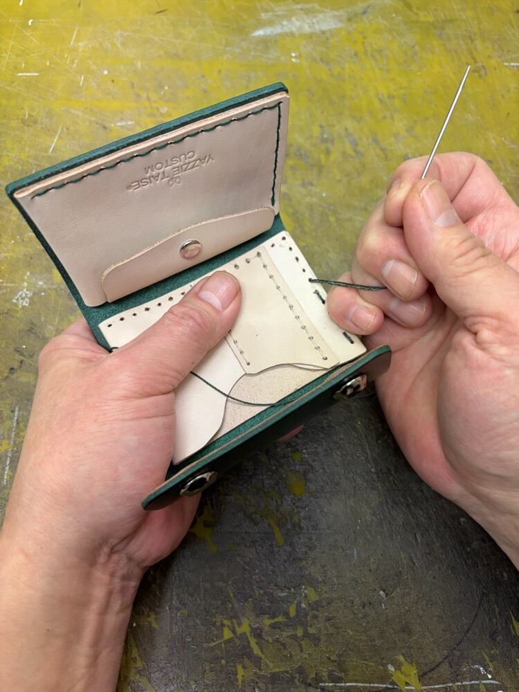 一点一点、丁寧にロウ引き太番手糸で手縫いし、お仕立ていたします。